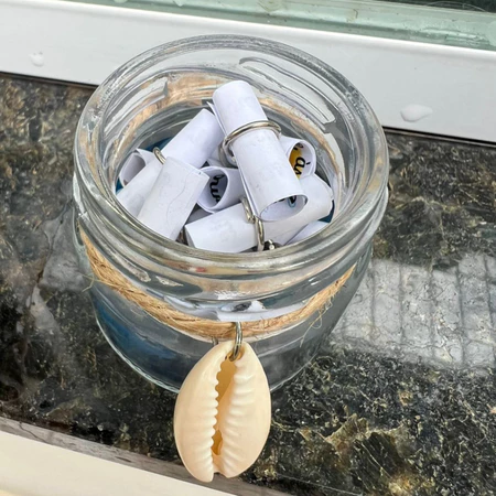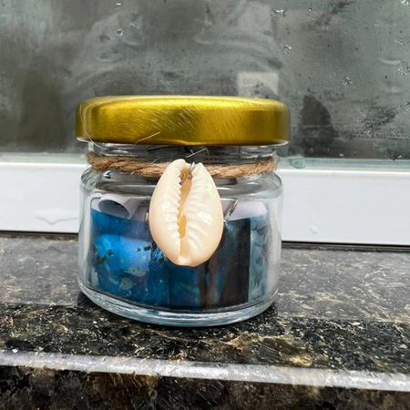 Sempre tem aquele dia em que precisamos de um conselho, mas ainda faltam algumas horas ou até dias pra próxima gira. :,) Agora não vai ficar tão ruim de esperar <3 pede pro Universo lhe mandar a mensagem certa, na hora perfeita. *-* Mini Potinho (40ml) com 20 mensagens (acompanha mais 30 mensagens para repor caso queira guardar na carteira ou presentear alguém). Tamanho perfeito para levar na bolsa, deixar na mesa do trabalho, junto ao ser altar ou em seu "cantinho seguro" favorito. A decoração desse anúncio foi inspirado em nossa mãe Iemanjá, mas podemos fazer como desejar. Só não esqueça de nos avisar no chat por gentileza. A cor da tampa pode variar entre: dourado, cobre, preto, azul ou branco (sendo metal ou plástico). Todos os potes vão com um tesouro dentro (podendo ser 1 item dos seguintes objetos com axé de Mainha: pulseira, cristal, pingente, amuleto, concha) Na falta do mini pote, será encaminhado o de 100ml com uma quantidade maior de mensagens.